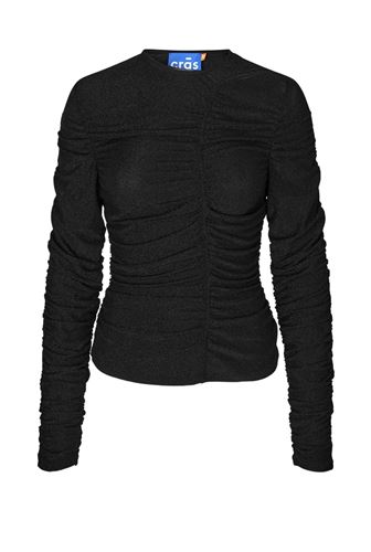 Glitter top från Cras i stretchigt matrial och med drapering.70% Återvunnen Nylon. 25% Metallic. 5% Elastan.30 grader maskintvätt.